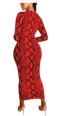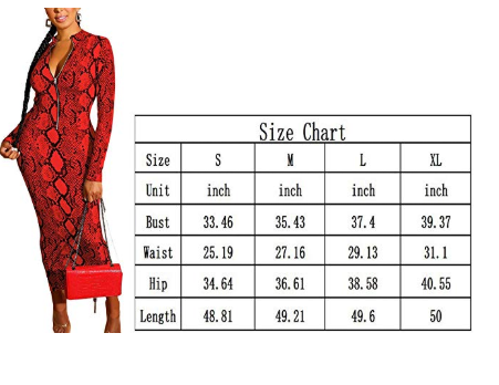 Features:Long sleeve ,Bodycon Midi dress, Slim Fitted, Sexy Snakeskin Print Dress ,Zippers Front Sexy Fashion Dress