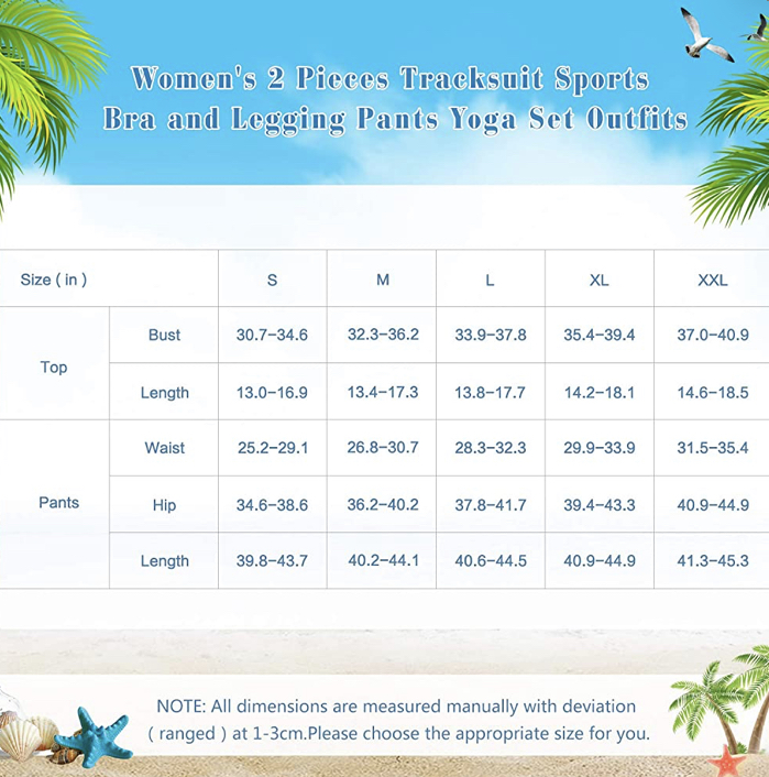 2 piece yoga outfits sets for women are made of 95% Polyester,5% Chlorine.The material is Super lightweight and breathable,the advanced fabric works to wick away sweat, and to keep you cool and dry during any workout. Soft to touch and gentle to your skin.