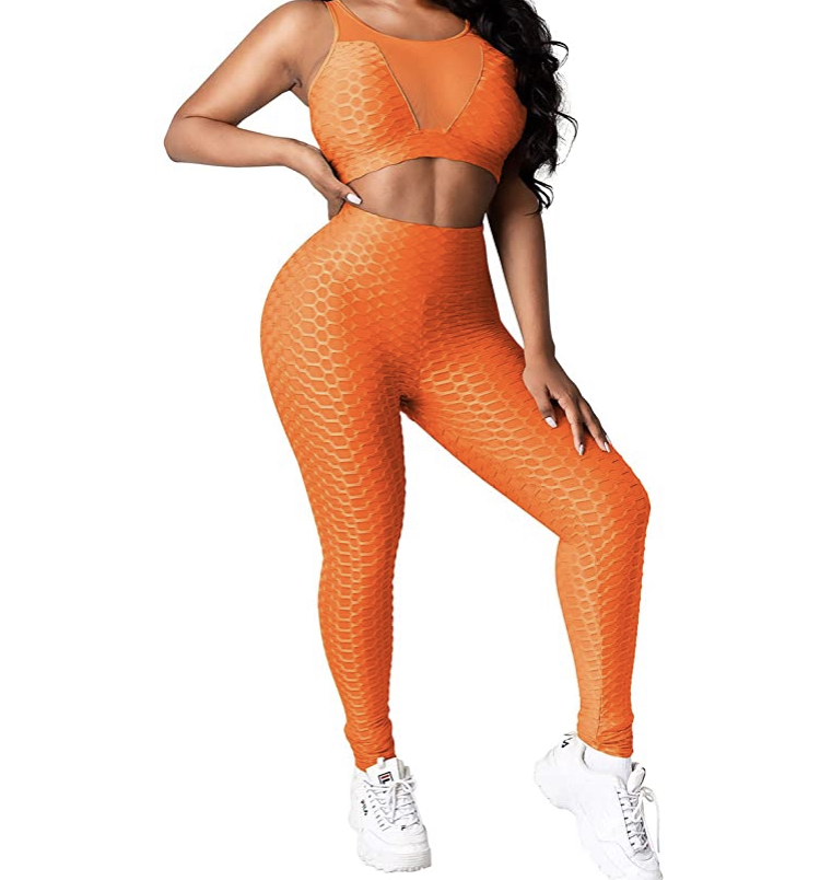 2 piece yoga outfits sets for women are made of 95% Polyester,5% Chlorine.The material is Super lightweight and breathable,the advanced fabric works to wick away sweat, and to keep you cool and dry during any workout. Soft to touch and gentle to your skin.